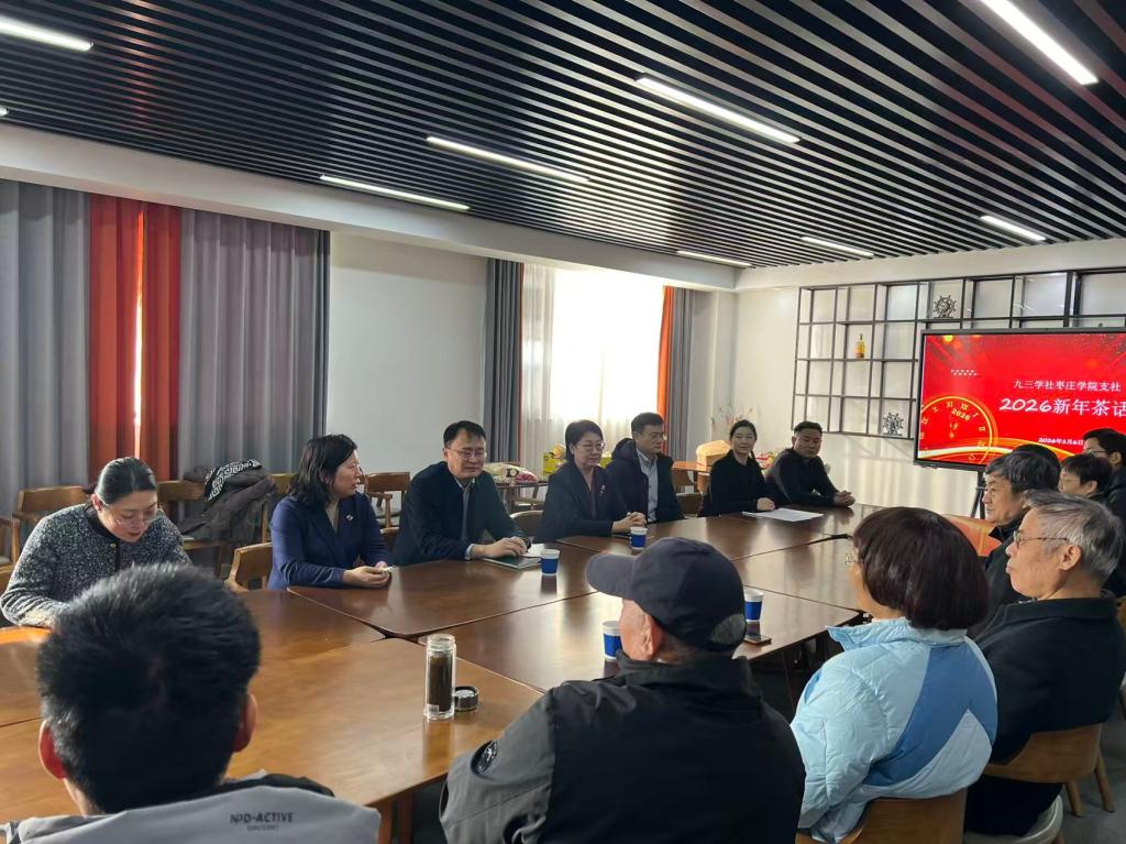 岁聿云暮,新元肇启。1月6日上午,九三学社枣庄学院支社在枣庄学院新城校区举办2026年新春茶话会。九三学社枣庄市委副主委韩梅,枣庄学院党委委员、统战部部长林勇,枣庄学院旅游环境与资源学院院长、致公党枣庄支委委员王满堂应邀出席,支社全体社员欢聚一堂,共话情谊、共叙发展。